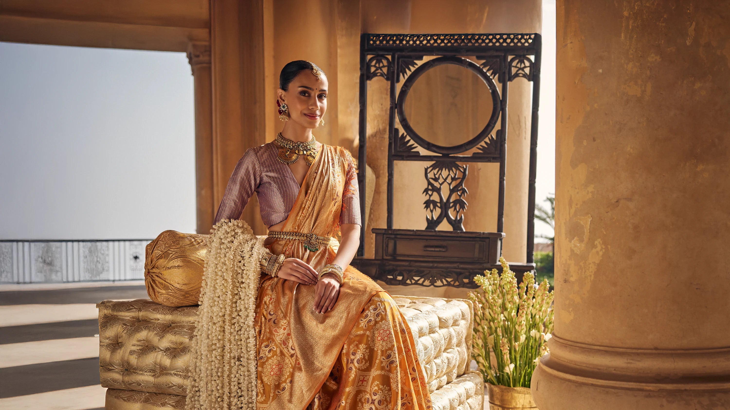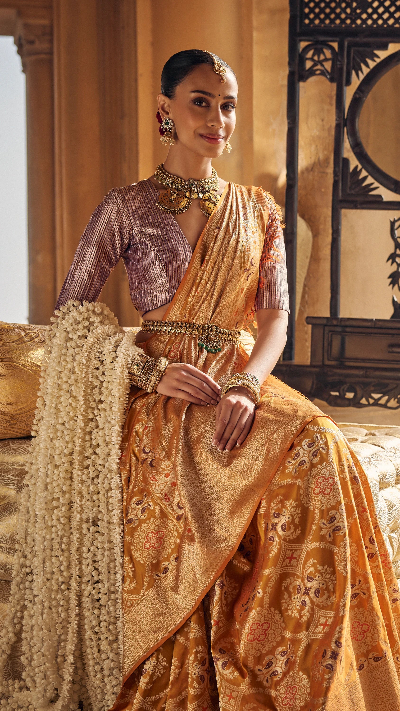 Yellow Banarasi silk Saree