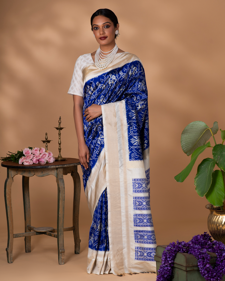 Blue Ikkat Silk Saree